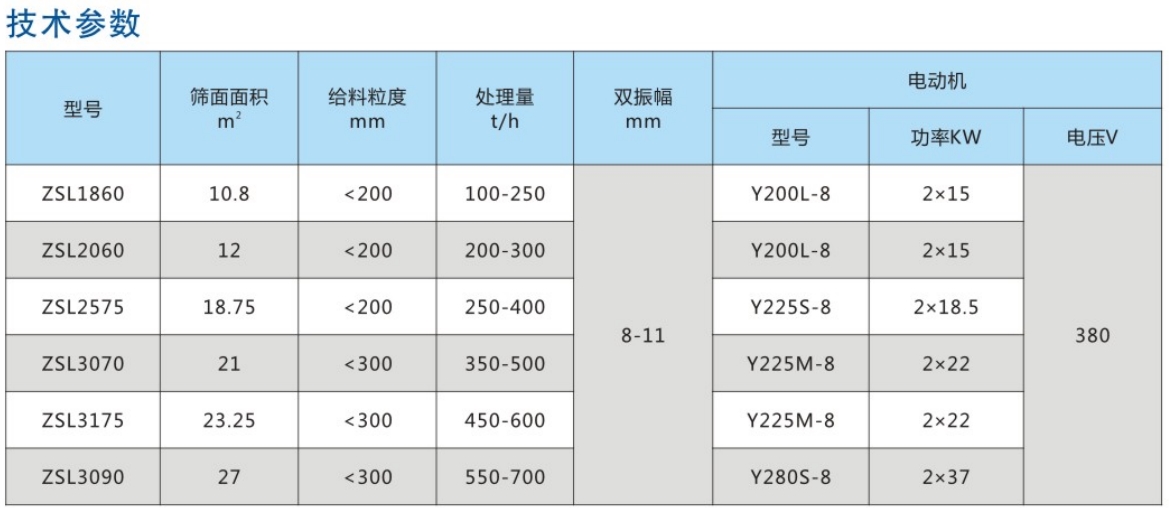 ZSL系列大型冷礦振動篩屬于雙軸直線振動篩,由兩臺電動機通過傳動軸外拖動激振器作反向自同步旋轉,使篩箱產(chǎn)生較大振幅的直線振動,電機不參振,這種振動篩具有生產(chǎn)能力大、工作可靠、振幅調節(jié)方便、傳給基礎的動負荷小等優(yōu)點。已廣泛用于冶金、礦山、煤炭、港口等工業(yè)部門,主要用于溫度在150°C以下;冷燒結礦分級作業(yè)。