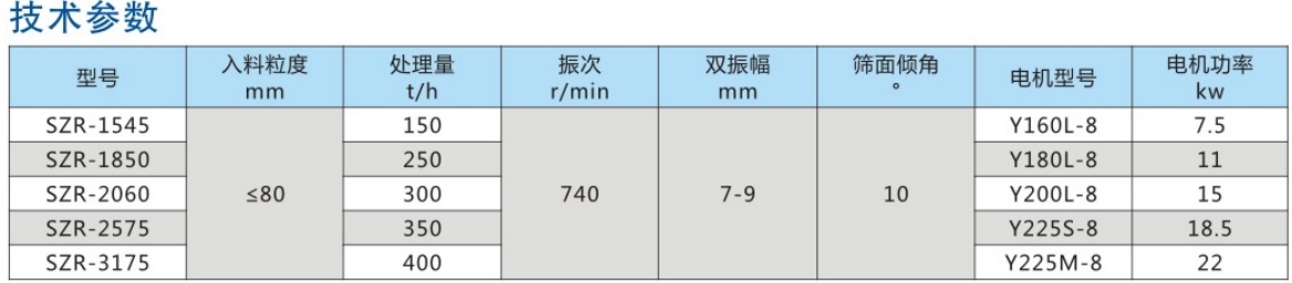 SZR系列熱礦振動(dòng)篩均為座式安裝。采用雙軸激振器,電機(jī)不參振;由兩臺(tái)電機(jī)外拖動(dòng)激振器作反向自同步旋轉(zhuǎn),使篩體沿直線方向作周期性往復(fù)運(yùn)動(dòng),從而達(dá)到篩分目的。